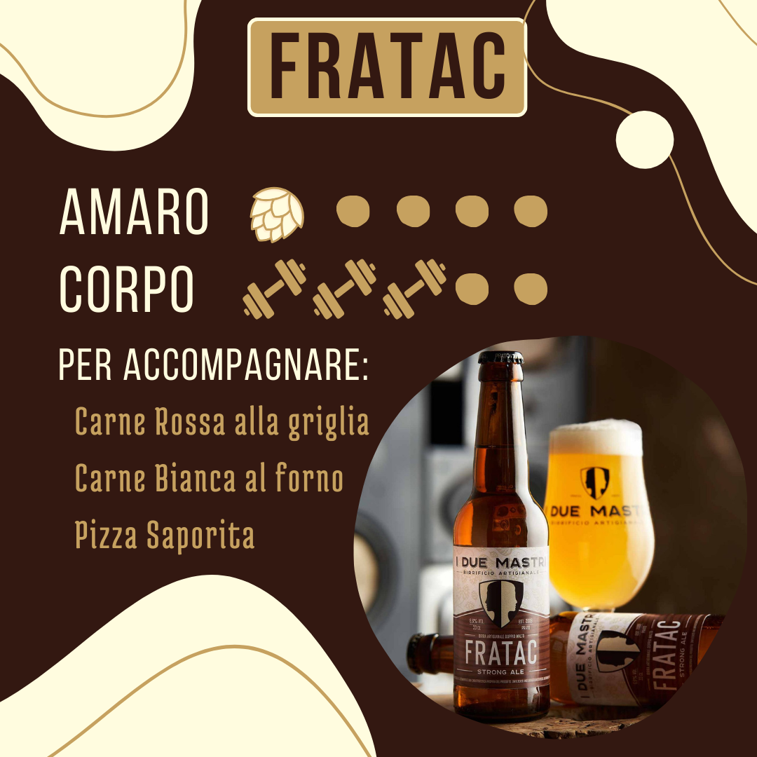 Dedicata agli amanti delle birre forti e dal carattere deciso, Fratac è una Strong Ale chiara dal sapore ricco, con note di biscotto e una sensazionale nota spiccatamente alcolica che avvolge il palato.
