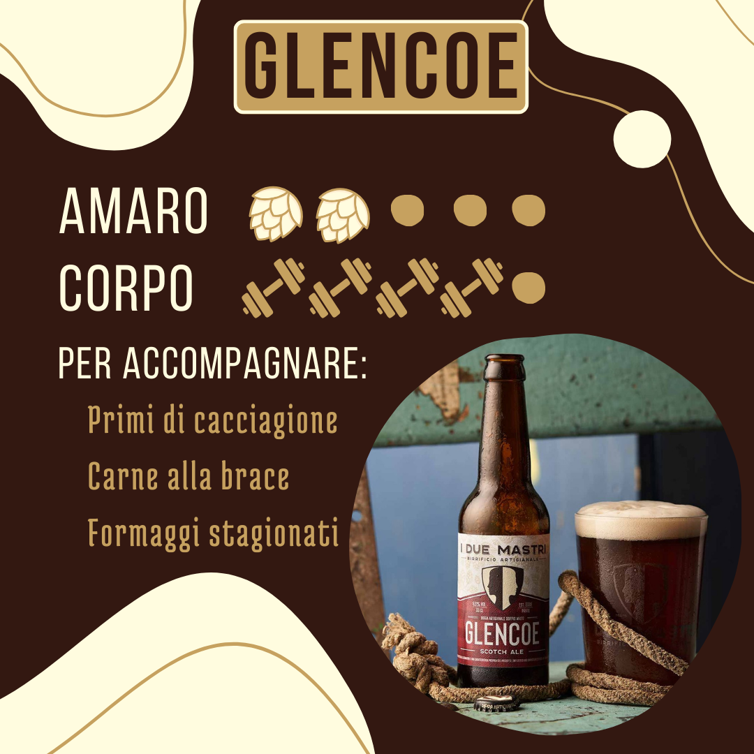 Glencoe è una birra di color rame con riflessi mogano dal gusto unico e inimitabile.