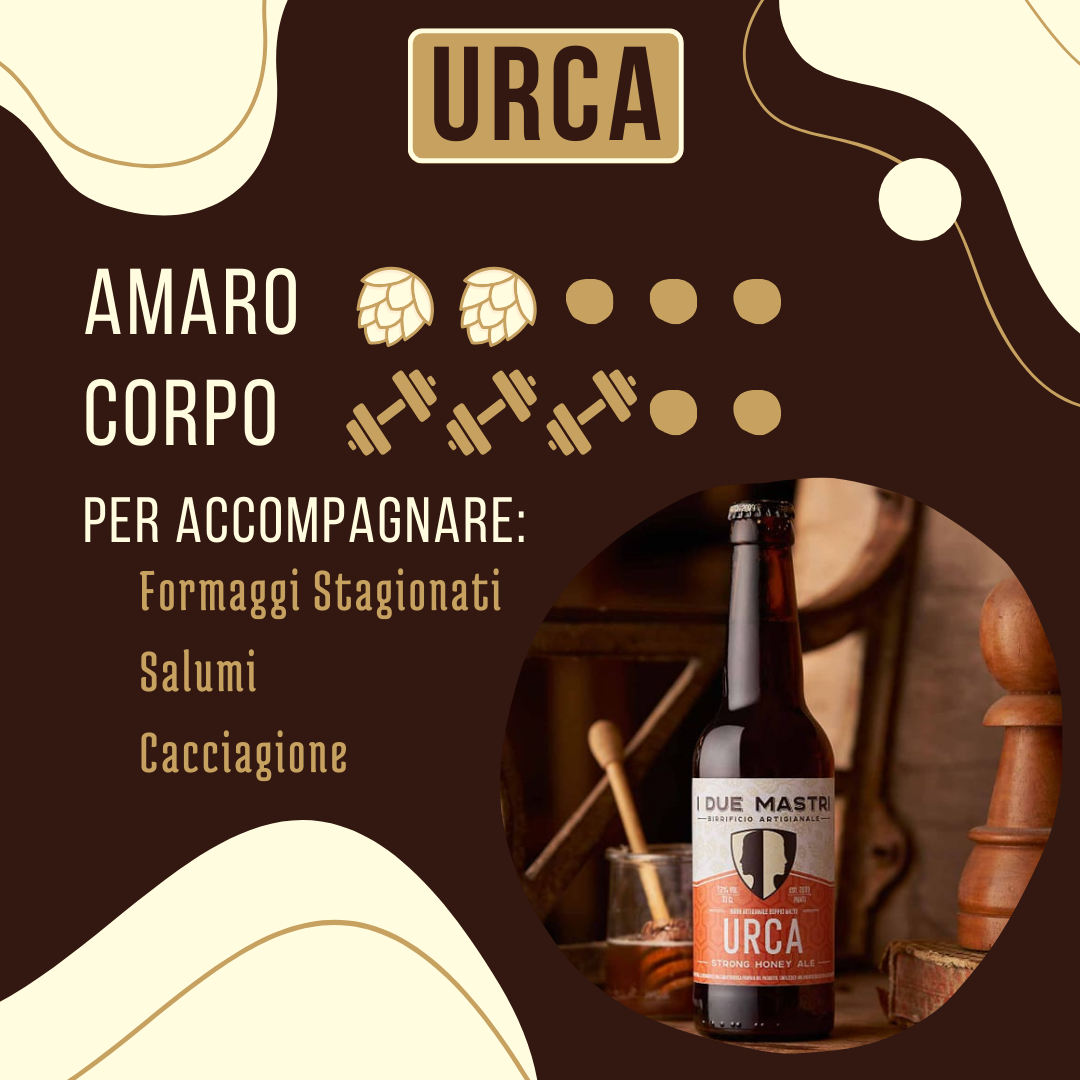 Urca è una birra unica, realizzata con miele di castagno Tosco-Romagnolo, che regala un gusto forte e dolce al tempo stesso, con una nota finale di amaro.