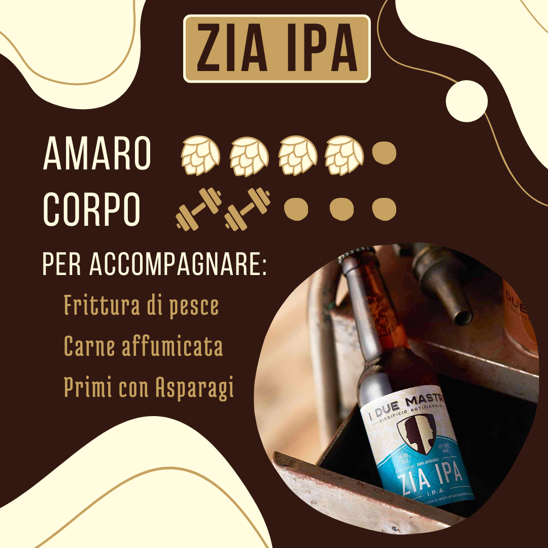 Sapore unico, gusto deciso: ecco Zia IPA, una birra ambrata all'aroma intenso di luppolo e una nota amara al palato.